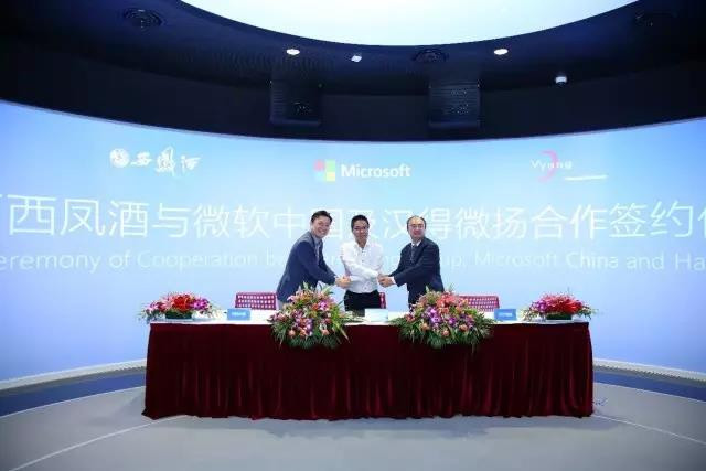 2017年8月,陕西西凤酒营销有限公司总经理任伟俊(图中),微软大中华区副总裁、全渠道事业部总经理、商业客户事业部总经理包嘉峰(图左)与上海汉得微扬信息技术有限公司总经理展舸(图右)在北京微软大厦签署合作协议,三方强强联合,共同致力于线上线下一体化的新零售模式、客户关系管理标准化的业务流程整合以及拥抱互联网时代的云转型之路,实现西凤酒、微软及汉得微扬的三方共赢。陕西西凤酒是我国著名的四大老牌名白酒之一,具有悠久的历史,她孕育于6000年前的炎黄文化时期,诞生于3000年前的殷商晚期,在周秦文化的抚育下成长,在唐宋文化的辉煌中嬗变,在明清文化的滋润下打向海外,在新中国成立后涅槃新生,在改革开放后