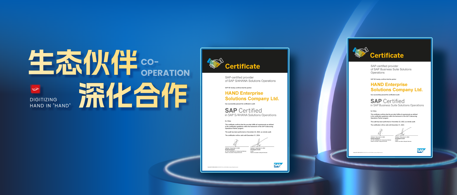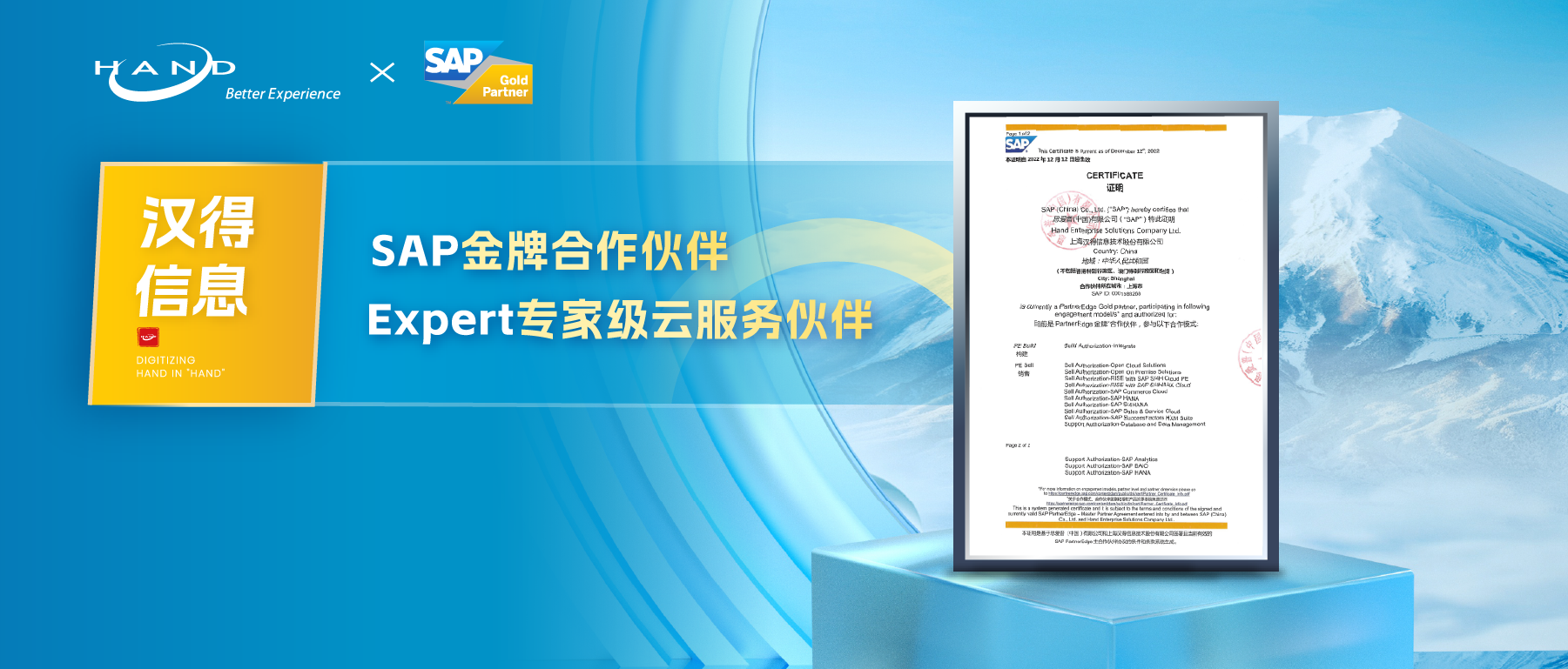 2022年8月初,汉得加入SAP生态合作伙伴,9月即获得 SAP ERP领域 Expert 专家级合作伙伴资质、Partner COE 授权。