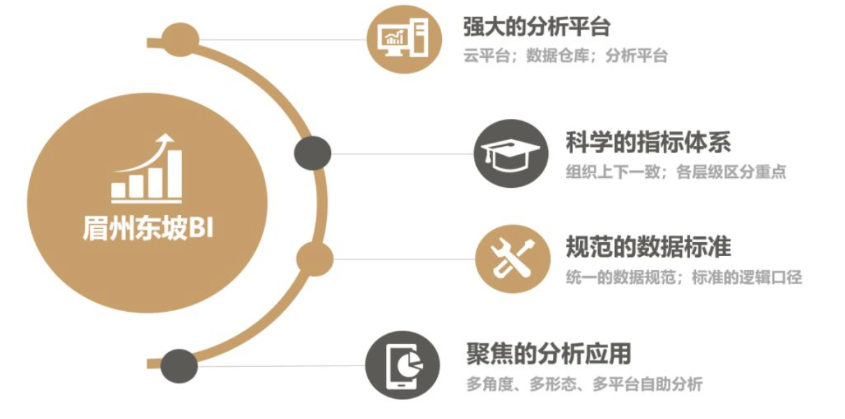 2019年3月19日,上海汉得信息技术股份有限公司与眉州东坡集团正式启动一期BI项目。在企业数字化转型的关键阶段,眉州东坡BI一期项目以眉州东坡的经营数据分析作为切入点,搭建基于云端的数据分析平台,主要与现有ERP系统、财务系统、POS等前端业务系统进行对接,建立数据分析模型;快速实现公司财务模块标准报表,并完成经营数据分析报表的输出;本期还包含销售和供应链两大模块,以目标达成分析为最高优先任务,主要面向集团中高层管理人员及数据分析用户。数据团队将与业务用户持续双向沟通,设计符合企业使命、集团战略和岗位需求的分析体系,明确BI的使用场景,并高度结合眉州东坡集团的IT规划,帮助内部IT和业务分析