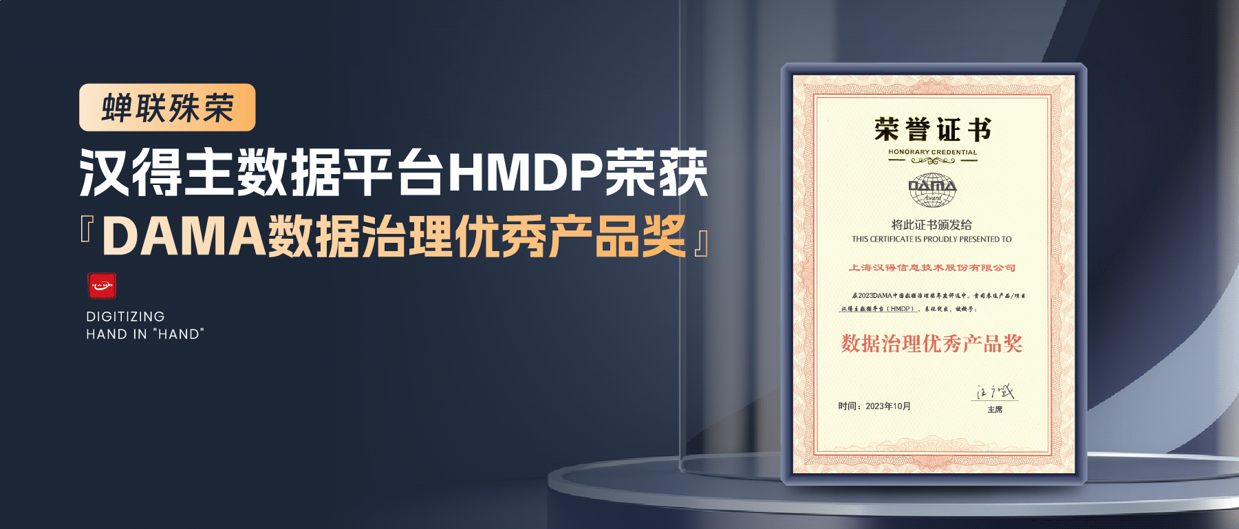 2023年10月20-21日,DAMA中国数据管理峰会在北京拉开帷幕,汉得主数据平台HMDP以其卓越的主数据管理能力和领先的数据治理解决方案,成功崭露头角,荣获“DAMA数据治理优秀产品奖”。