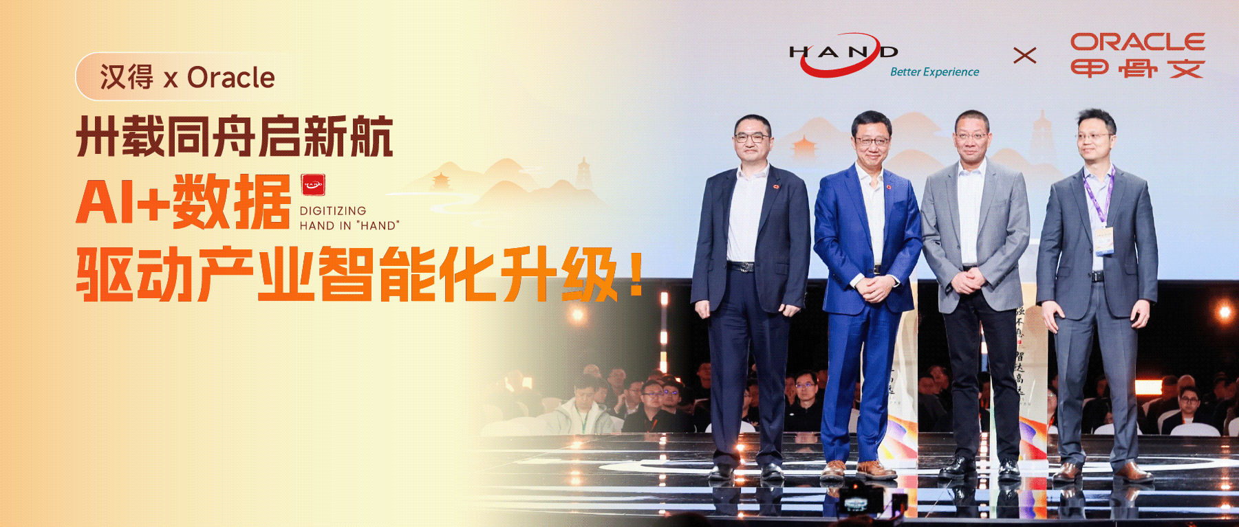 今年是汉得第30个年头开始的时候,又恰逢新时代来临,在本次2025汉得用户大会现场,Oracle甲骨文公司副总裁及中国区董事总经理吴承杨、甲骨文公司副总裁及Oracle NetSuite大中华区总经理叶天禄,共同带来主题演讲《AI+数据:致胜未来》。