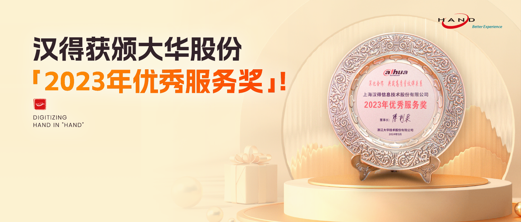 近日,汉得获颁大华股份授予的“2023年优秀服务奖”,作为大华股份可靠的数字化生态合作伙伴,汉得与大华长期保持着紧密的合作。汉得华东区销售总监俞洁佳先生、汉得得逸华东总经理余俊先生作为公司代表出席并领奖。