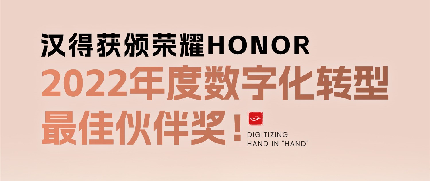 近日,汉得获颁荣耀 HONOR 授予的“2022年度数字化转型最佳伙伴奖”,作为荣耀HONOR可靠的数字化生态合作伙伴,汉得与荣耀长期保持着紧密的合作,汉得智慧财务事业部总经理曾子均先生作为公司代表出席并领奖。此次获奖不仅彰显了汉得在企业数字化转型领域的卓越服务能力得到荣耀的高度认可,更充分证明了汉得与客户伙伴之间开放、共建、共赢的合作关系,能够经受住时间的考验!荣耀终端有限公司CIO吴明富先生曾在公开演讲中提到,荣耀的数字化愿景就是“构建连接消费者、伙伴和员工的数智荣耀,数字化能力已成为公司核心竞争力,使能荣耀高质量发展”。客户伙伴们的认可与肯定,始终是我们坚定前行的动力。汉得有幸陪伴众多优