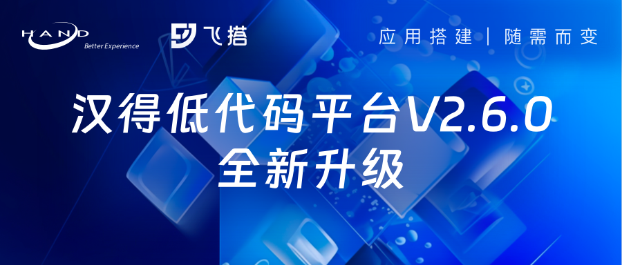 汉得aPaaS低代码平台-飞搭 V2.6.0版本已于2023年8月21日正式发布,飞搭低代码平台是基于低代码理念打造的融合aPaaS平台,助力企业快速搭建业务应用。