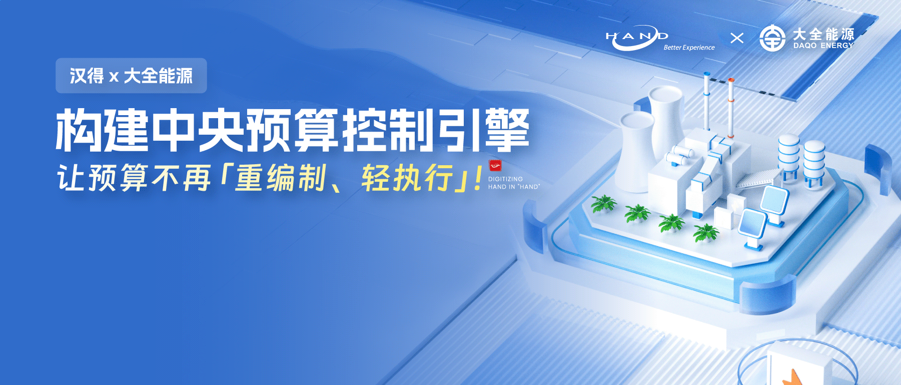 大全能源携手汉得,采用SAP BPC+汉得智慧财务的中央预算控制平台组合,通过完善的全面预算管理解决方案,基于成熟稳定的中央预算控制平台,提升大全能源四大预算过程管控能力。