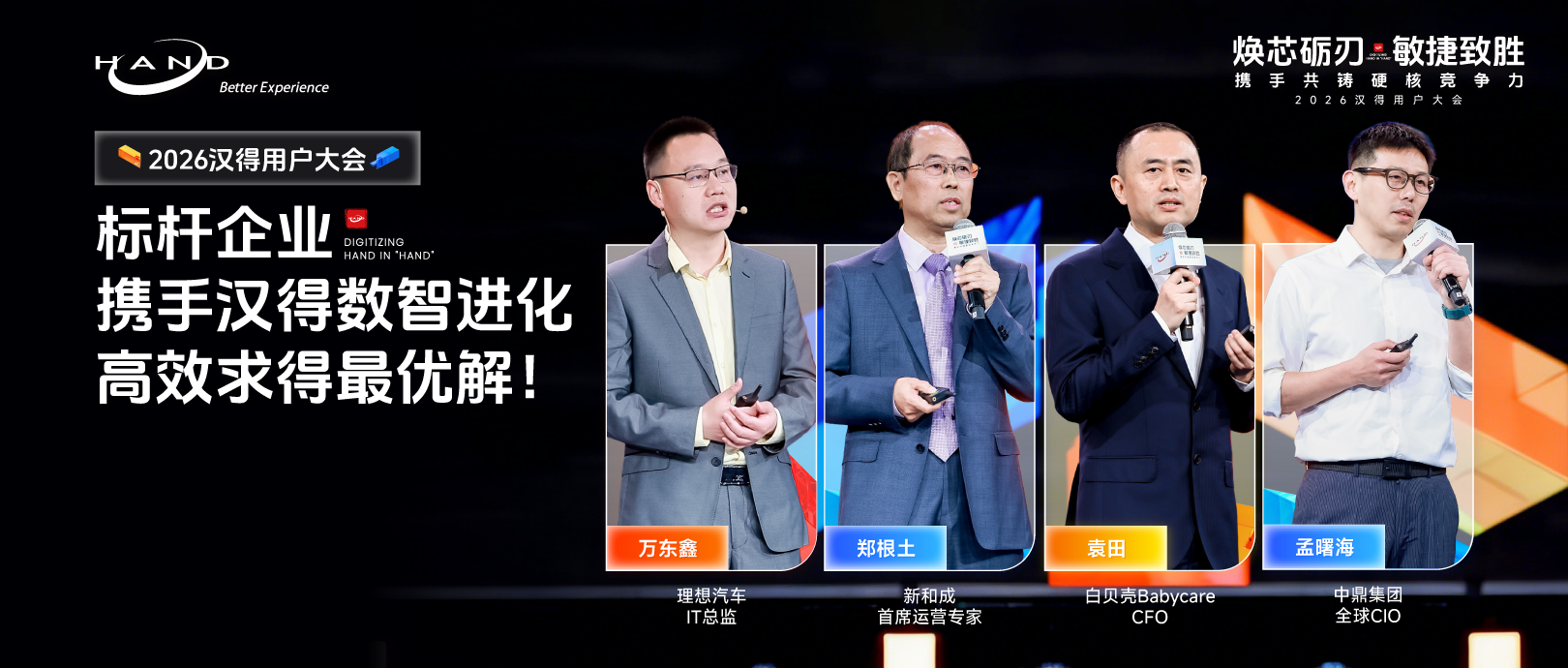 2026汉得用户大会,特邀理想汽车、新和成、白贝壳Babycare、中鼎集团等标杆企业,结合一线实践,分享在汉得的助力下,如何通过 AI 技术,深度融入企业供应链集成、智慧架构重塑、全渠道业财智能中枢建设,以及全球化智能制造等核心领域的实践经验与落地成效。