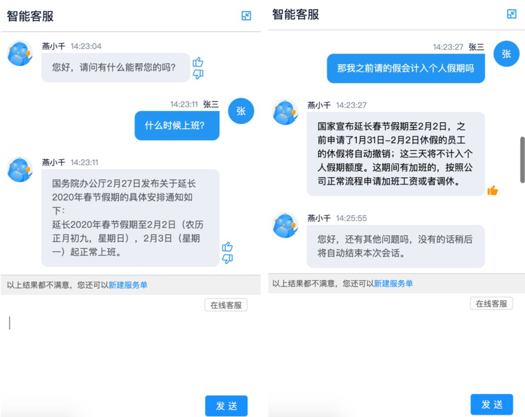燕千云智能客服,从知识库中智能检索。帮助IT、HR、行政、后勤、运营等团队解决用户问题,解放劳动力。