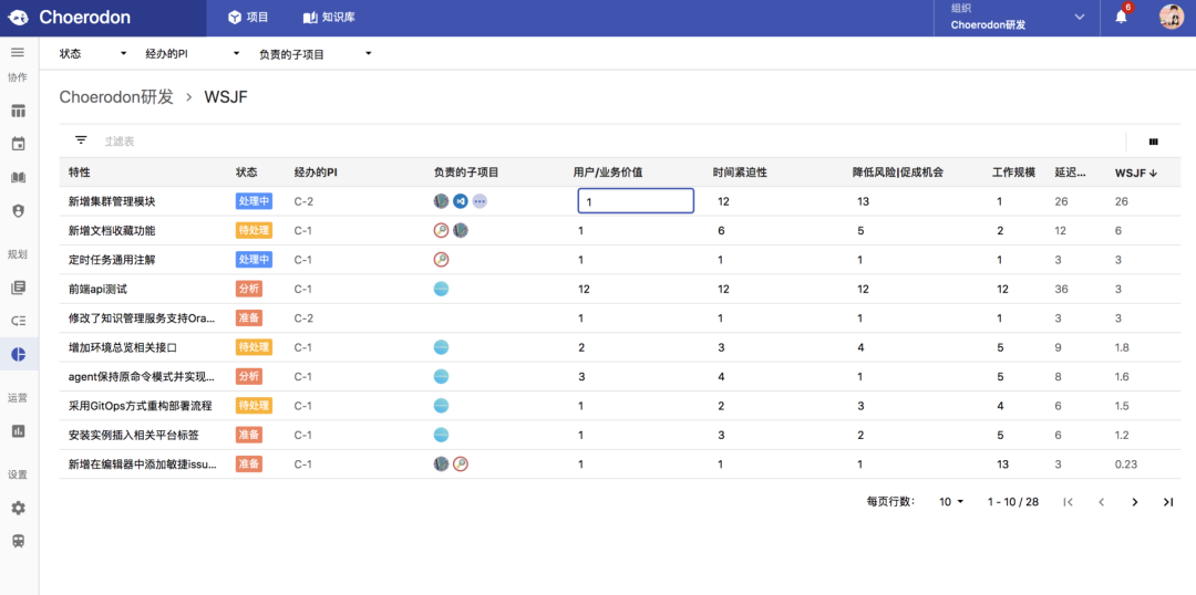我们可以通过WSJF(加权最短作业优先)法则来确定出价值较大,时间较紧迫但规模较小的特性。通过WSJF权值排序,筛选出优先级较高的特性。