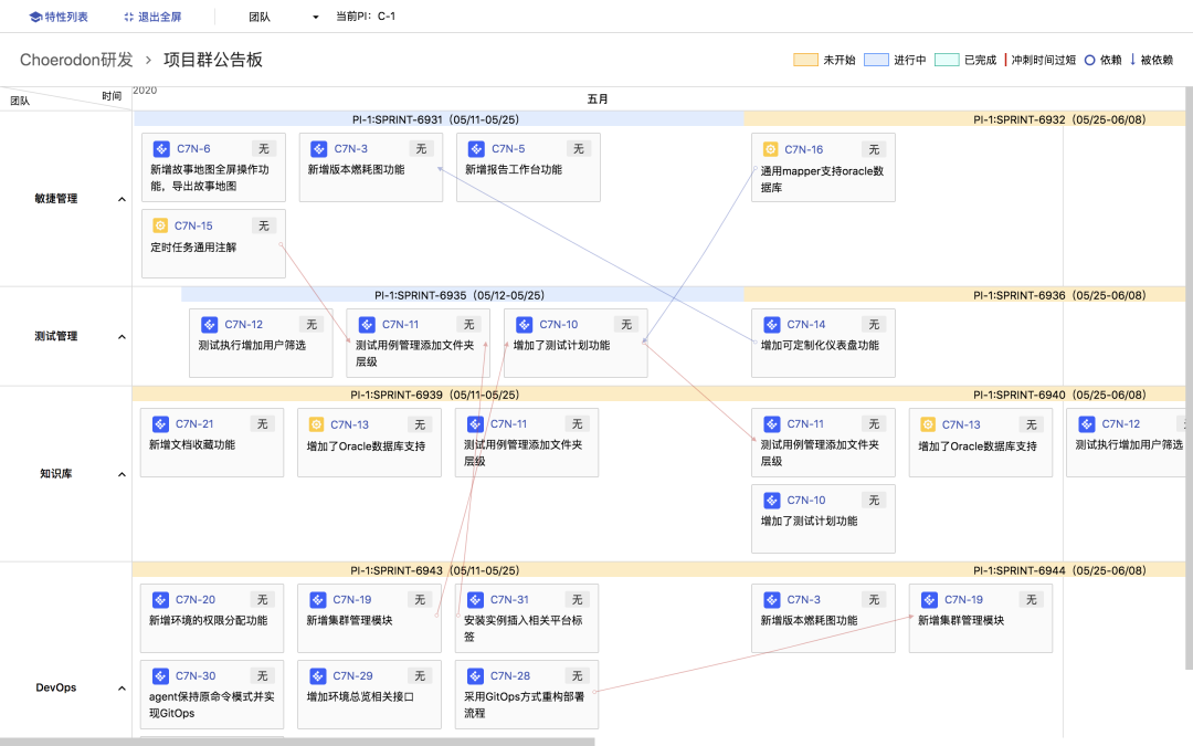 将特性依赖和跨团队依赖整合到项目群公告板。