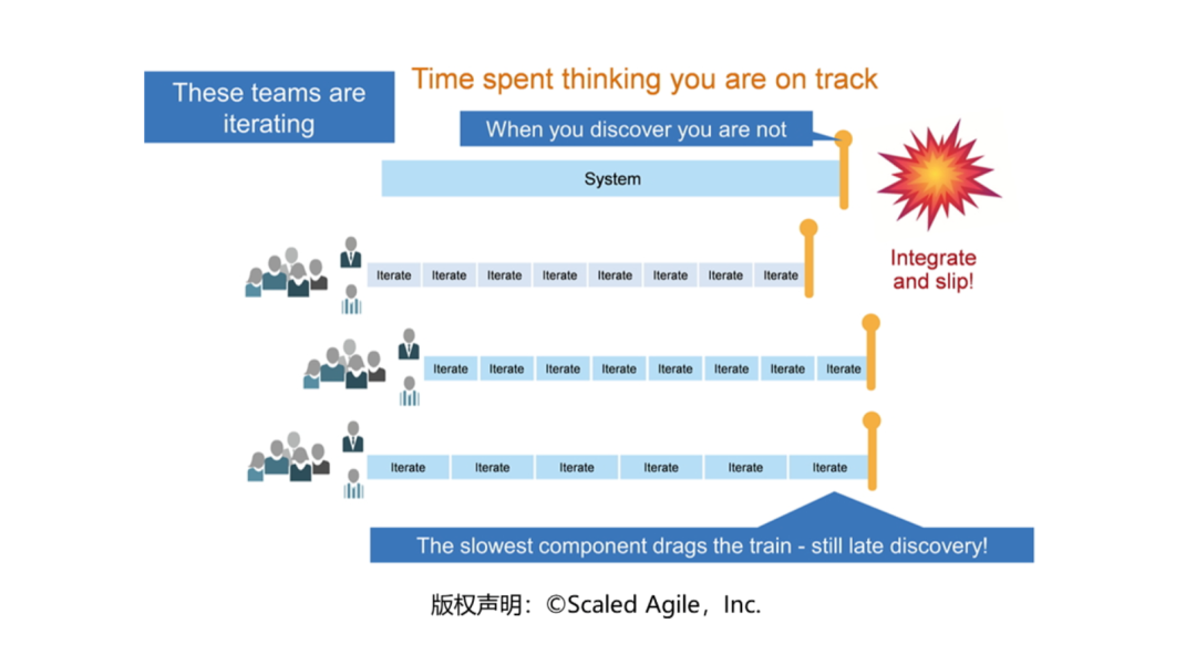 ✖ 单个团队可能是敏捷过程,但系统没按照迭代交付;