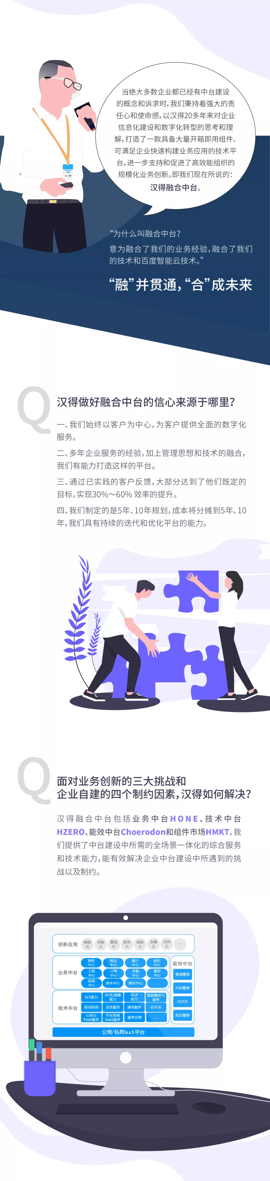ABC SUMMIT 2019 百度云智峰会,汉得信息联合百度智能云重磅发布——“融合中台联合解决方案”。在现场,汉得信息CTO黄建华发表了题为《业务创新 赋能引擎-汉得融合中台》的主题演讲。