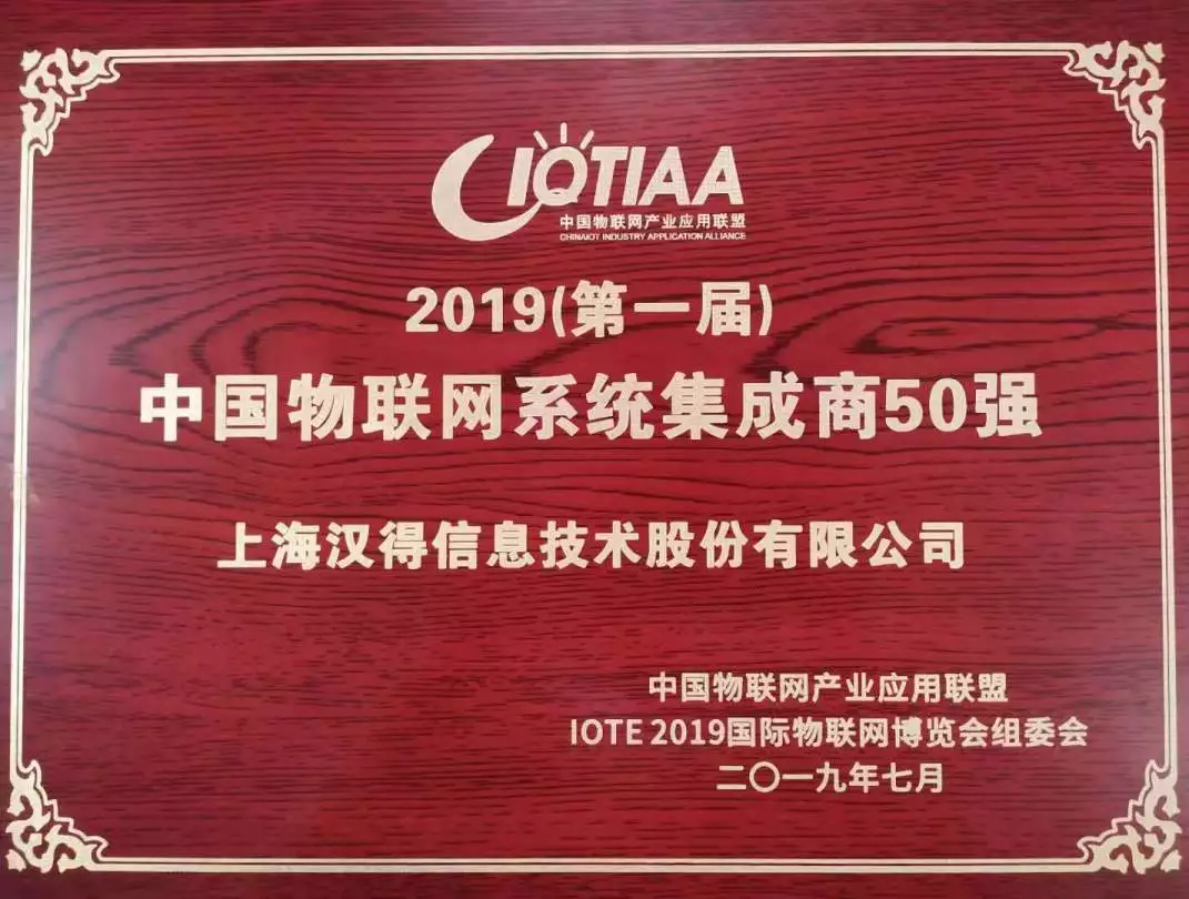 汉得信息凭借专业的研发队伍、雄厚的技术实力、持续的创新能力、多品类自研终端、多行业落地应用案例及市场品牌推广等方面的优势,从近150家来自物联网各应用领域的系统集成商企业中脱颖而出,成功入选“2019中国物联网系统集成商50强”。