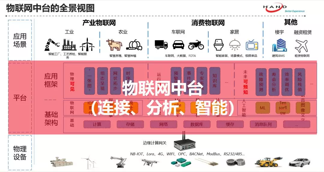 汉得物联网解决方案,是汉得作为企业的综合解决方案提供商,基于多年的行业经验整理出的一套完善的端到端的物联网行业解决方案,能够直接让设备端和云端相连,借助云计算来处理海量的设备数据,加入了机器学习的功能,更好地为客户提供服务。