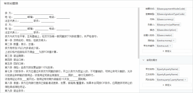「OneContract合同管理系统」针对不同行业不同用户内部信息化管理要求,提供定制化合同履约生命周期管理解决方案,包括收付款计划、采销业务集成、合同结算、合同任务、合同预警和合同风险,助力用户内部业务和财务数据贯通,实现履约过程跟踪监控管理和企业合同报表管理,提升内部管理效率。