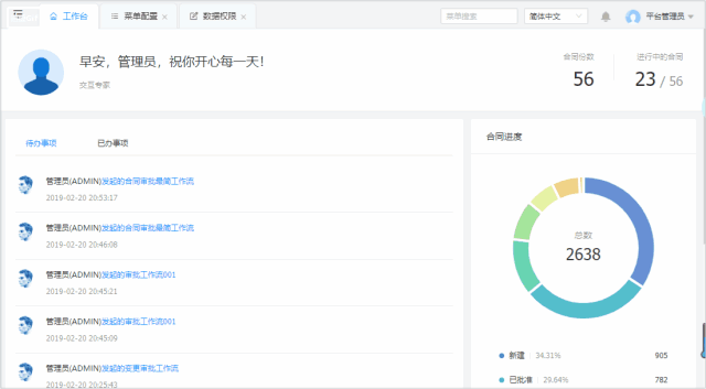 平台基于汉得猪齿鱼(Choerodon)微服务平台架构进行搭建,依托于Hzero平台已完善封装服务,后端以Spring Cloud作为微服务分布式系统,前端以React作为开发组件的前后端分离模式进行开发,并在AntD的基础上进行二次封装和改造,全面打造出更适合企业级应用的智能合同管理系统。