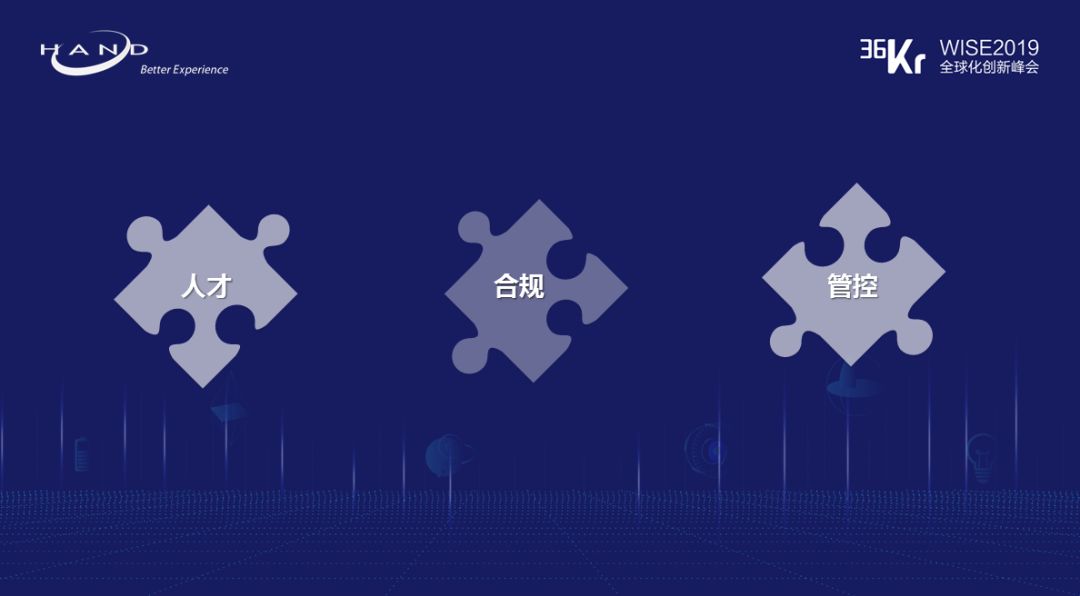 作为中国本土最大的IT咨询服务商之一,很多年前汉得就一直在寻求和实践让自己成长为一家国际化运营的咨询公司。在最近的6年,汉得见证了越来越多中国企业出海, 期间很多跨国企业选择汉得作为自身走进来或者走出去的合作伙伴, 在这个过程中汉得逐步了解跨国企业经营的痛点和关注点,积累下了较为丰富的海外咨询和实施经验。林俊滨认为:“中国企业在走出去的时候普遍会面临的几个问题:人才、合规、管控。”