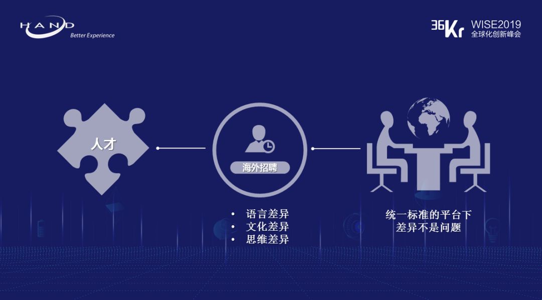 ◆ 人才 :具备国际化经营思维和能力的人才肯定是企业首先需要解决的问题。要真的留住海外人才,让海外员工真正得到总部的支持并融入企业文化, 其中一个非常好的工具,就是聚焦差异并建设一个把数据标准、流程、规则都设计好的信息化平台。