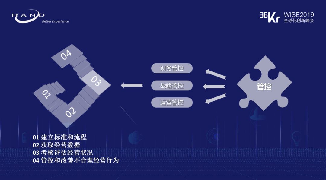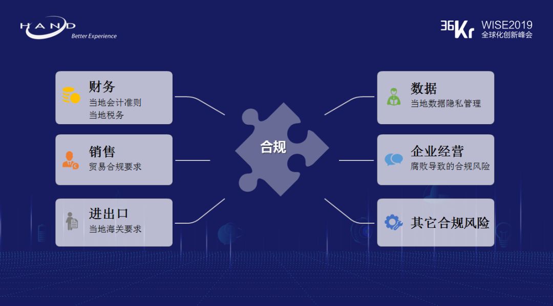 ◆ 管控 :一个企业真正要做好跨国运营或者说全球化的经营, 面对全方面的管控需求,信息化是最有效力的一个手段。一个能把标准、数据、考核机制、事前或事中的干预手段集中在一起的信息化管理平台, 能让系统出具符合法规和经营的报告以及指导,其实不少问题都能迎刃而解。