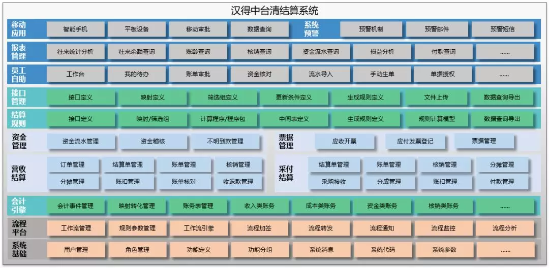 汉得中台清结算系统 HSCS 作为先进的中台财务管理系统,链接资金管理、营收结算、票据管理、采付结算等企业众多核心交易系统,致力于打通企业系统任督二脉,持续帮助客户创造更多价值,推动企业数字化转型。