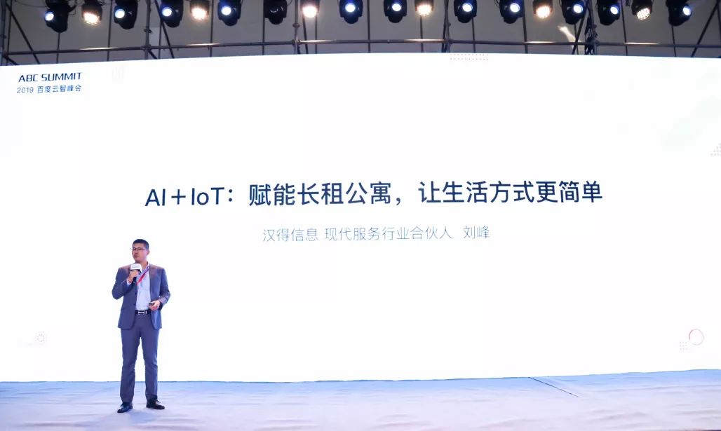 在百度智能云物联网峰会上,汉得信息现代服务行业合伙人刘峰先生受邀参加[智能生活]专题论坛并发表主题演讲《AI+IoT:赋能长租公寓,让生活方式更简单》,重点介绍了汉得与百度智能云在长短租公寓领域推出的智能公寓联合解决方案,分享汉得如何通过领先的解决方案与技术应用,帮助企业端实现智能管理,助力用户端提升生活品质。