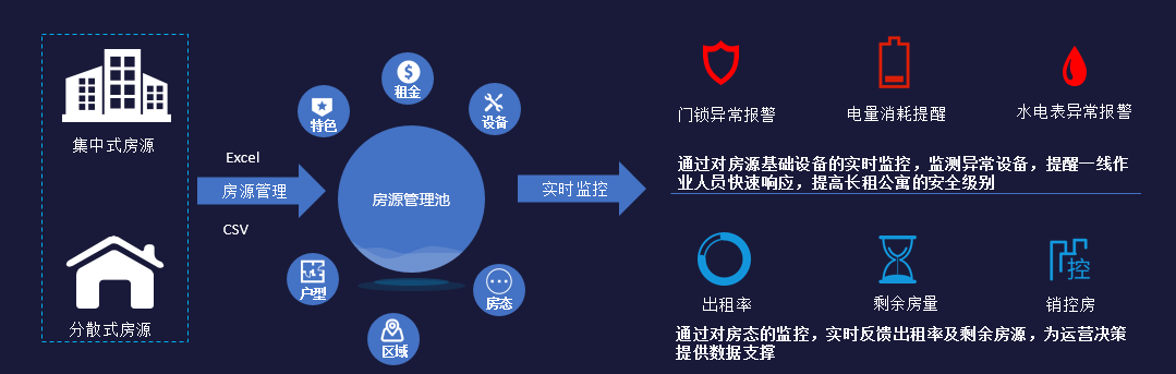 智能公寓联合解决方案具备两大特点——全面是其一,因为不管是分散式还是集中式的业态类型,它都可以进行系统化管理,而且不仅支持长租,同时满足短租诉求,支持空置期管理,提高更多的收益率,具备密码管理、快速发布房源及运营推广等功能。