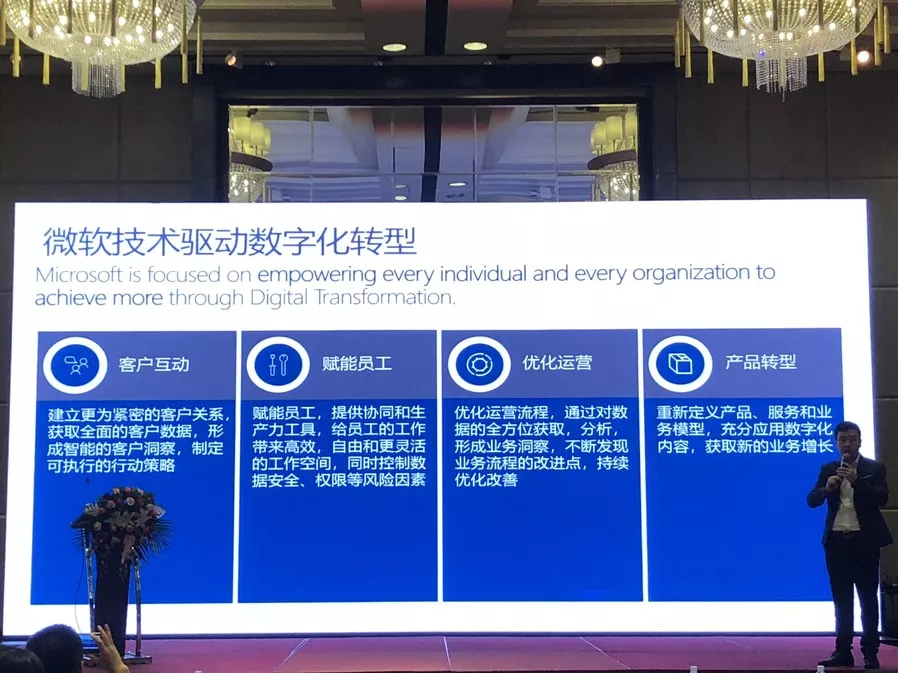 微软合作伙伴事业部总经理Jony Geng首先为西南区客户阐述技术浪潮下的微软战略,分享了微软成功转型的实践与经验,期待未来西南区企业借力微软技术实现华丽转型;微软商业应用合作伙伴总经理项宁则进一步诠释了Dynamics 365产品赋能企业的应用理念,并表示Dynamics 365与微软IOT,AI,Power BI等技术无缝衔接,将助力企业应对瞬息万变的变革趋势;中企通信数据科学及创新副总监詹东东结合多个案例经验,为现场客户分享一站式ICT服务解决方案。作为中国中信集团旗下的网络通信公司,中企通信利用全球客户资源优势,借助遍及全球的专项网络服务,为企业提供全球化、业务数字化、能力比特化的服务,赋能制造企业布局未来。