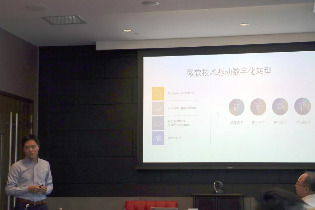 上午10点,众位嘉宾齐聚微软center one,微软合作伙伴事业部总经理Jony Geng和微软Dynamics 大中华区总经理Tom Lu分别进行了开场致辞,欢迎各位的到来。