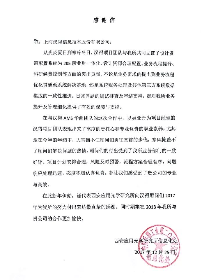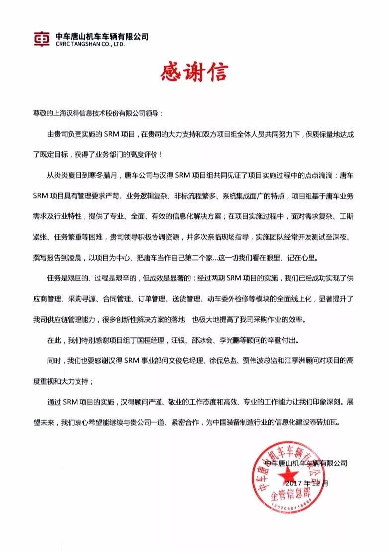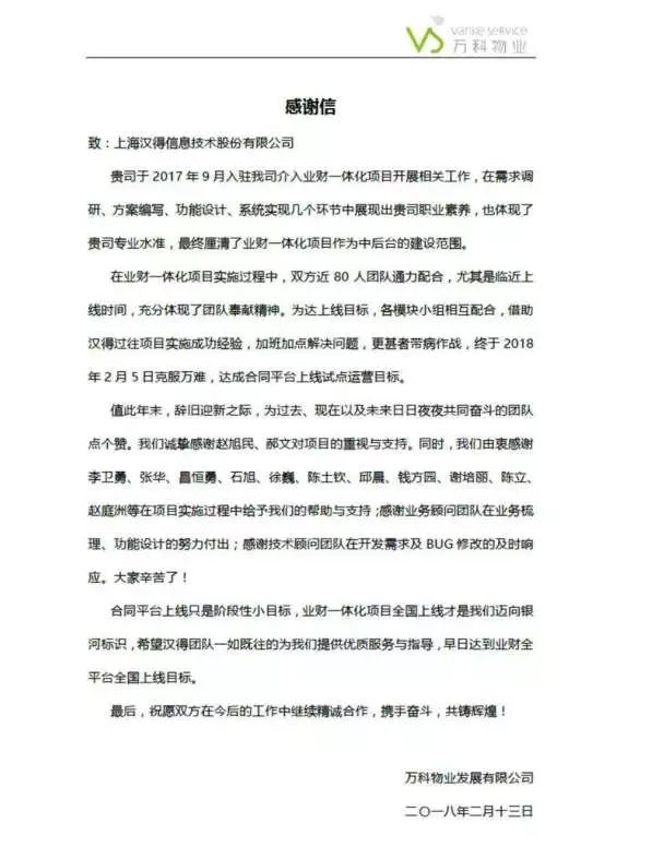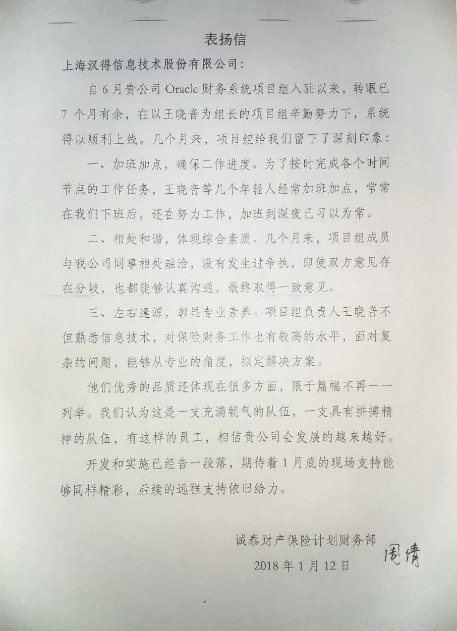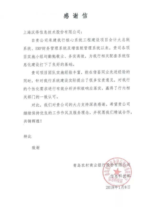 感谢信和表扬信的征集持续进行中,请将你收到或发送给汉得的任何方式的感谢 (电子版,纸质版,纪念品等)发送至市场营销管理中心邮箱: