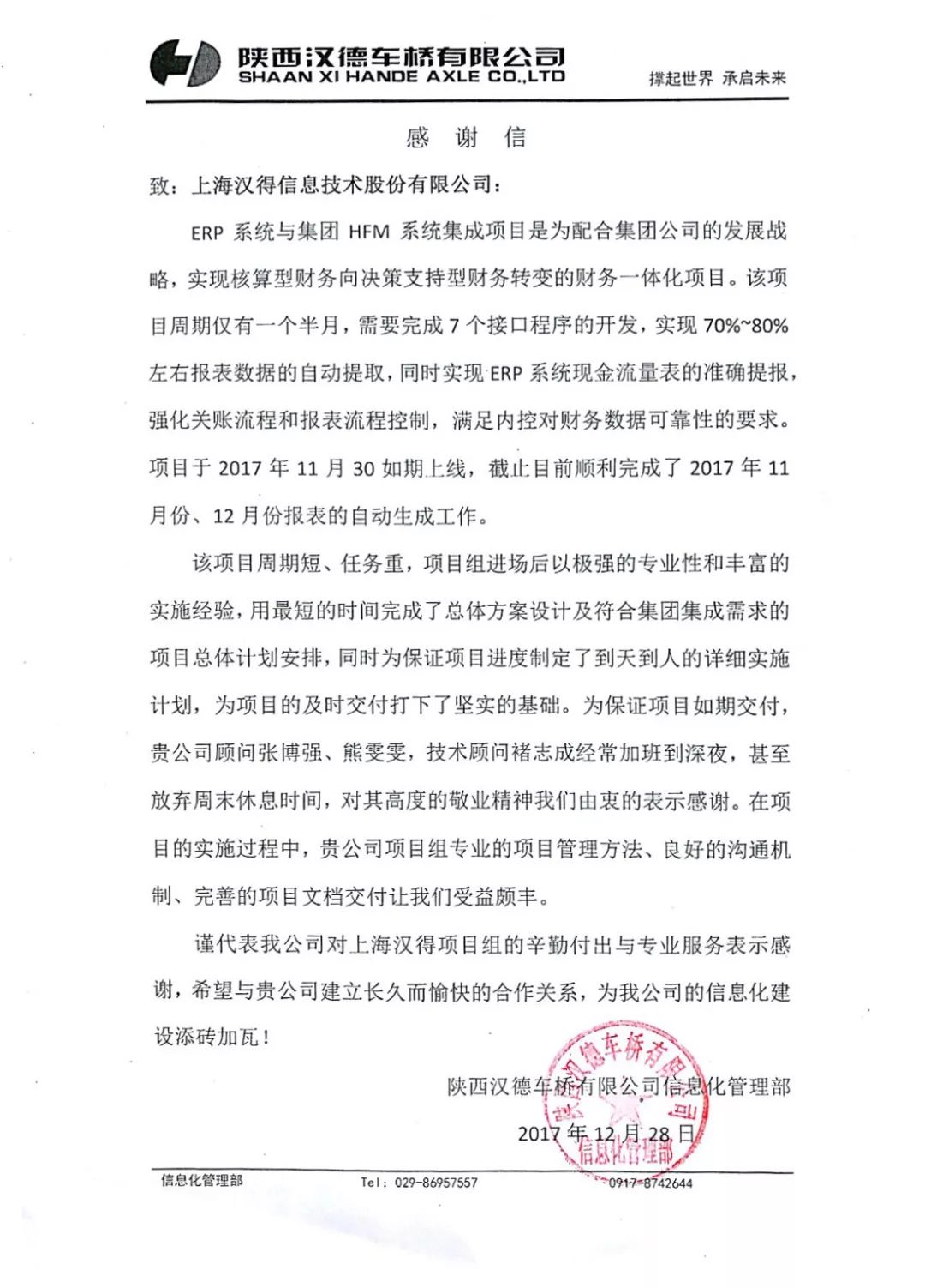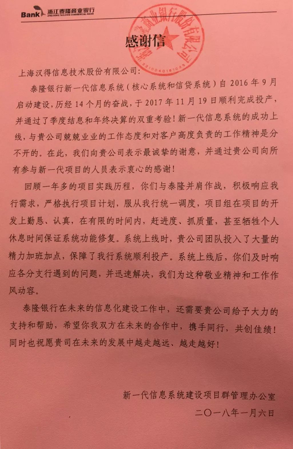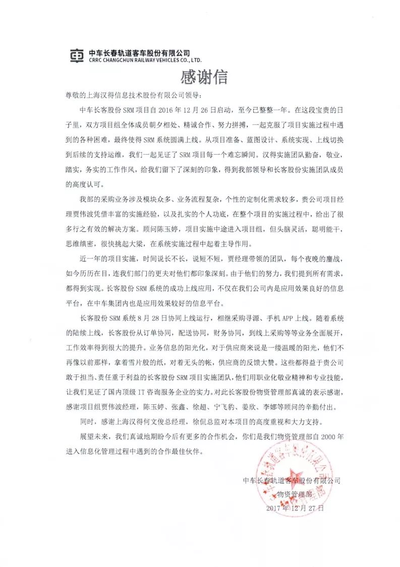 感谢信和表扬信的征集持续进行中,请将你收到或发送给汉得的任何方式的感谢 (电子版,纸质版,纪念品等)发送至市场营销管理中心邮箱: