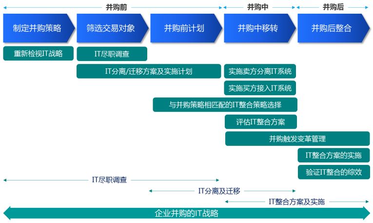 作为企业并购的重要环节,IT整合策略的选择与实施要与并购的整个过程紧密集成。