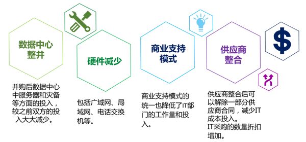 双方公司完成并购整合后立即体现的IT成本节约
