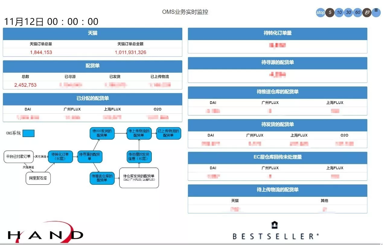 捷报!捷报!汉得全渠道团队支持的绫致,双十一史无前例的全天销售额达10.2亿,订单量破186万单,当日发货量破120万单;3分钟销售额破亿,8小时41分销售额突破去年总额7.4亿!同比去年,销售额增长38%,当天发货量增长71%。