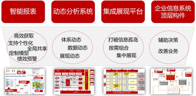 集成展现平台,将各个平台的数据集成在一起,打破信息孤岛,打破各个专业的业务系统数据的分散状态,提高数据的利用率,串联相关业务的数据链条,例如订单系统与客户关系管理系统,预算系统与实际业务系统等;