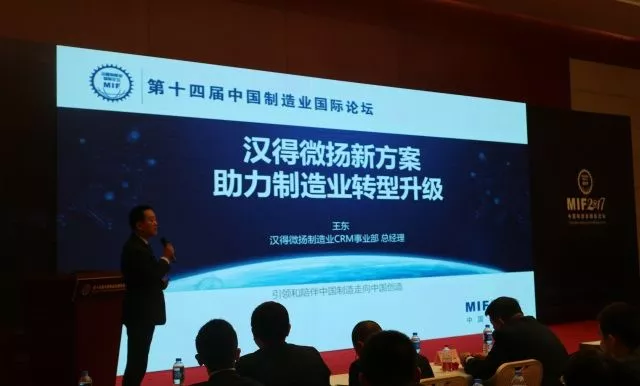2017年9月28日至29日,汉得微扬携手微软共同参加了于天津梅江会展中心举办的第十四届中国制造业国际论坛,该论坛被誉为“制造业达沃斯”。本届论坛以“构建中国制造2025新生态──精益·数字·智能”为主题,2000余位制造业领袖、专家、学者、政要到场参会,共同探讨“中国制造2025”新生态构建以及智能制造的落地路径,微软Dynamics大中华区产品总经理卢东明及汉得微扬制造业事业部经理王东也在其中。
