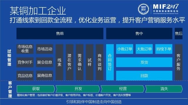 汉得微扬制造业CRM事业部总经理王东随后登台发表演讲,在数字化转型背景下,从服务转型的角度来看,目前多数企业服务归属于“成本中心”,由此将面临一系列的衡量标准、尺度等问题,下一步企业将逐渐向“利润中心”转型, 通过数据实现服务的标准化、流程化。此制造业解决方案,不仅打通了企业生产、服务、管理的各个环节,更对微信等社交软件进行了集成,提供更为本土化的数字化转型解决方案。