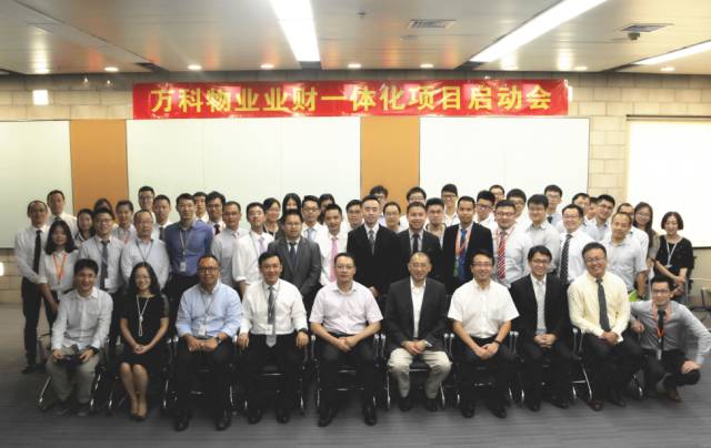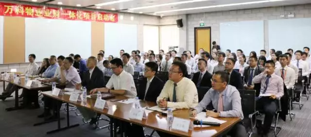 与会成员全景 万科物业首席运营官寿永春、首席财务官李庆平、首席信息官林国锋、助理总经理冯霞,博裕资本执行董事周晓波以及物业事业本部部门负责人,汉得信息董事长陈迪清、副总裁赵旭民、AMS一部总经理郝文、销售部南方大区华南非制造业销售总监毕永祥、AMS一部TAM总监李卫勇,及业财一体化项目组成员等共60余人参加了启动大会,会议由汉得信息李卫勇和万科物业侯悦悦共同主持,会议的召开,标志着万科物业正式全面拉开业财一体化项目实施的序幕。