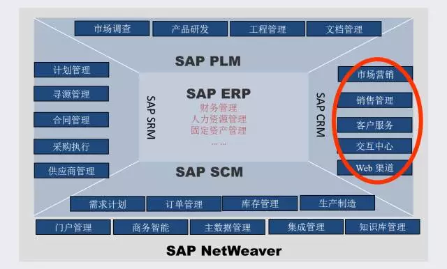 Fig 1. SAP CRM在企业信息化系统中的定位