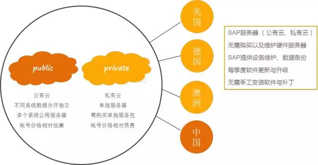 2. SAP 为企业用户提供“公有云”和“私有云”两种不同的部署服务,以满足不同客户的需求。