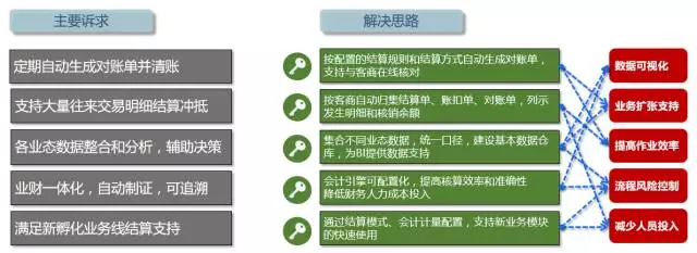针对互联网企业面临的种种问题,汉得从专业化的角度将其财务管理诉求逐条破解: