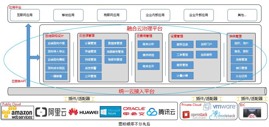 Ø 跨云管理:HCMP接入了多个云平台,可以融合管理公有云和私有云资源,只需要一个HCMP账号就可以管理关联在账号上的所有云平台的资源;