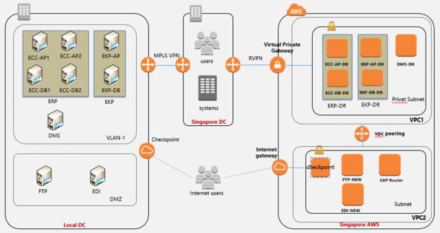 2017年5月,搭建云灾备测试系统,部署了SAP ERP、CMP EKP和SAP DMS测试系统的灾备,主要用来测试网络、系统架构合理性、技术验证和系统接口验证;