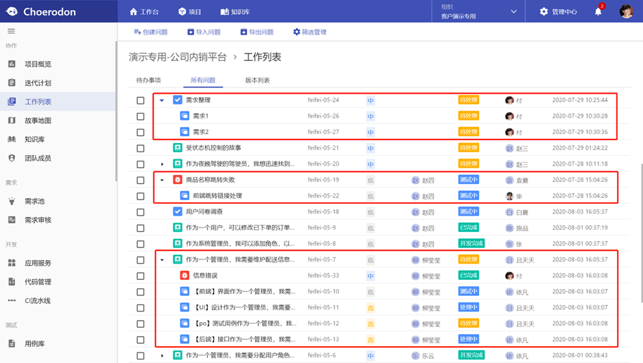 导入问题支持按照任务-子任务、故事-子任务父子层级导入;