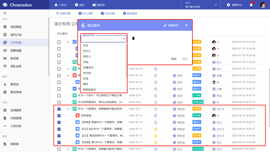 工作列表-所有问题支持全部字段筛选,包括全部预定义字段、自定义字段;