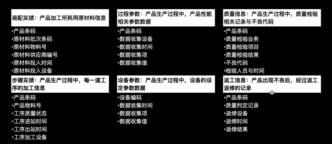 *对产品的返哺:产品需要建立独立的追溯信息,以实现和生产实绩的读写分离。同时追溯数据结构需要具备高效率的树状结构遍历能力。