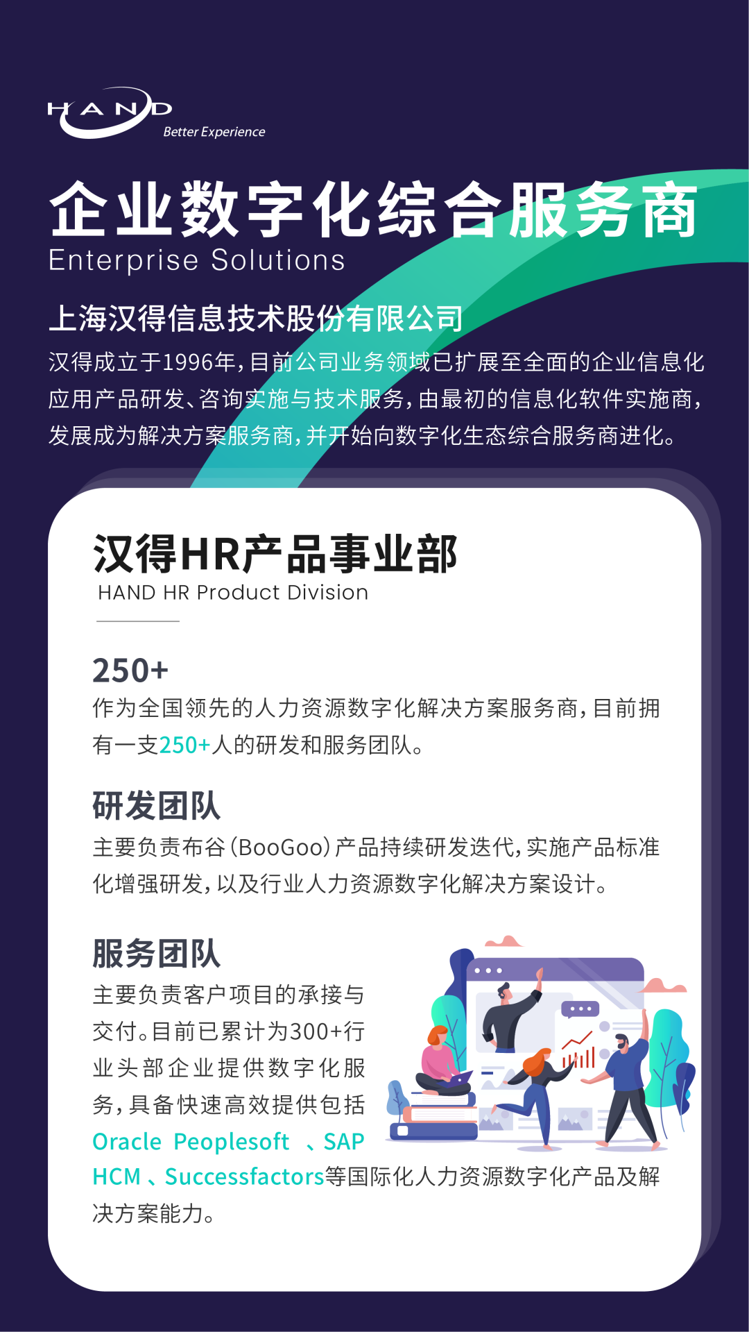 汉得目前已积累一大批优秀的自主研发产品,并为客户取得了良好的应用效果,汉得将持续为企业提供更完善的解决方案,推进现有产品研发,打造优质的产品与创新平台