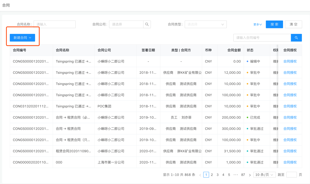 汉得新准则租赁系统为了帮助企业更好地管理租赁资产,在租赁模块开发合同管理功能,实现租赁合同新增,支持批量将租赁合同导入新增界面完成新增。