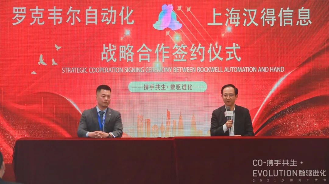 左:罗克韦尔自动化渠道副总裁 王乐右:汉得信息高级副总裁 陈志骏在2021汉得用户大会现场,汉得信息与罗克韦尔自动化正式签署战略合作协议,并宣布双方将在工业物联网、边缘计算和制造执行系统 (MES) 等领域展开深度合作,集合研发力量,携手为客户打造IT/OT融合创新的数字化转型解决方案,赋能各行业加快实现智能制造。这也是继双方在工业物联网领域展开深度合作后,积极开启的新一轮合作探索。随着智能制造的持续深化,制造业的数字化转型步伐正在显著加快, IT与OT的深度融合是实现智能制造的关键,也是企业在转型中普遍面临的挑战。罗克韦尔自动化的FactoryTalk InnovationSuite 工业物联网平台,作为帮助企业实施数字化转型的软件工具集合,能够实现IT/OT的有效融合,从硬件设备的联网、物联网平台的搭建,到数据可视化,以及数据分析挖掘,帮助企业加速数字化转型规划与落地。同时,FactoryTalk InnovationSuite 能够支持汉得快速打造行业整体解决方案,为制造业企业提供稳定、灵活、可扩展的数字化转型平台。汉得信息高级副总裁 陈志骏汉得信息作为中国市场上颇具规模的企业数字化综合服务商,一直致力于推动智能制造业务的发展,经过多年的积累和沉淀,目前拥有国内规模领先的智能制造系统规划和实施团队,以及诸多行业整体解决方案。罗克韦尔自动化长期深耕工业物联网等领域,拥有丰富的制造业数字化转型经验,我们将基于本次战略合作发挥各自专长,加速双方产品和解决方案的整合,深化IT与OT的融合,强化在重点行业领域的解决方案优势,进一步推进智能制造业务的深度发展,一同打造长期合作、可持续化发展的共赢模式。罗克韦尔自动化渠道副总裁 王乐作为智能制造的引领者,罗克韦尔自动化正在基于以跨界创新塑造价值、以行业拓展传递价值的“1-1-N”模式,携手产业链上下游企业集智汇策,通过构建覆盖全产业链的合作伙伴生态,积极推动中国制造业的转型升级。我们很高兴与汉得信息继续深化合作,双方在智能制造和数字化转型领域有着高度一致的认同与追求,都期望为中国制造业的高质量发展助一臂之力。相信此次签约将一进步加速双方的技术创新融合,用创新驱动增长,同时扩大双方的市场覆盖,与众多制造业企业携手共赢数字化未来。汉得信息与罗克韦尔自动化将全面展开战略合作,加速双方产品和解决方案的整合,深化IT与OT的融合,强化在重点行业领域的解决方案优势,进一步推进智能制造业务的深度发展,携手为中国制造业的高质量发展助一臂之力。