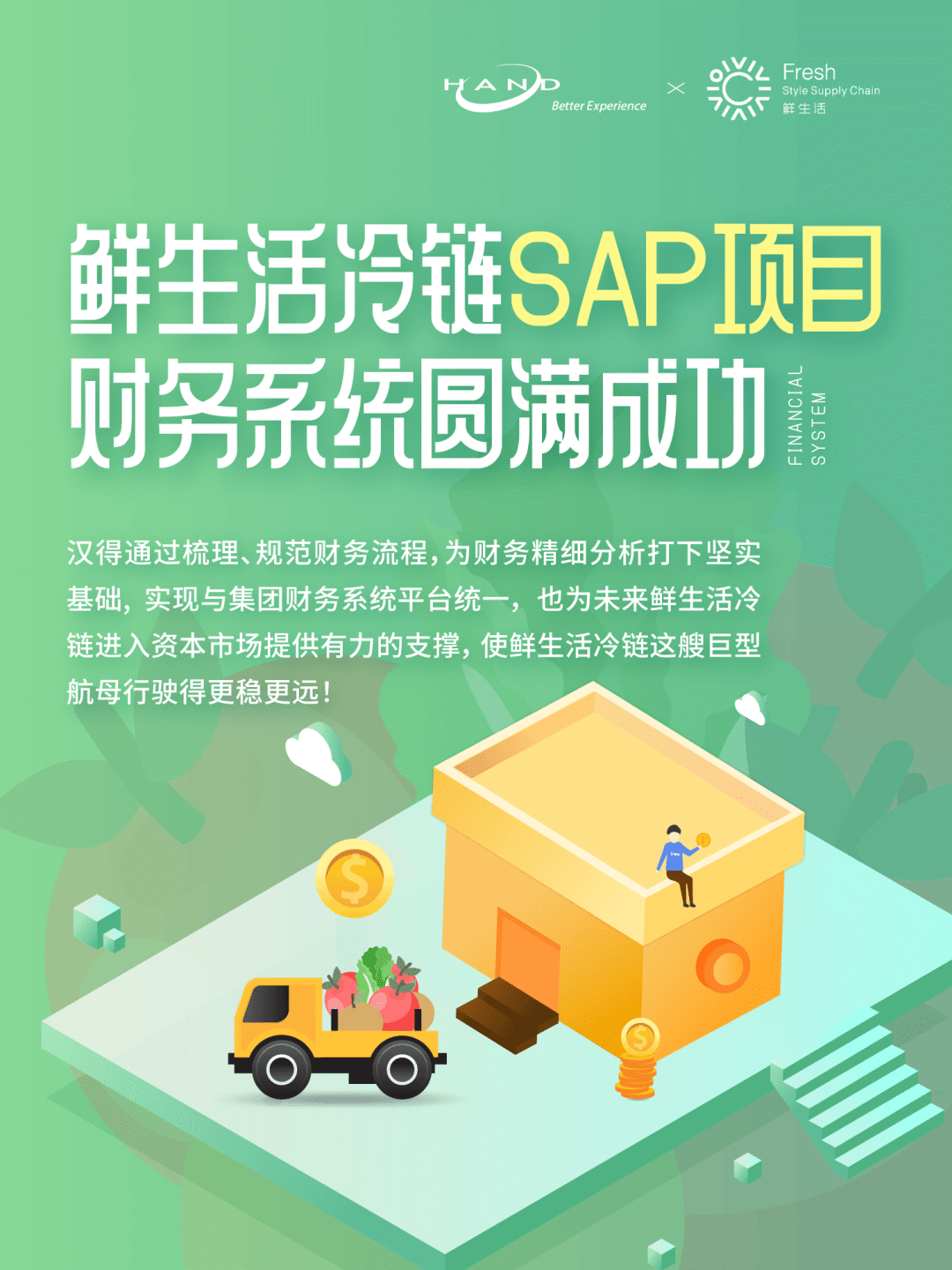 10月,鲜生活冷链和汉得信息在成都正式召开鲜生活冷链SAP项目总结大会,双方领导层、项目组全体成员进行项目总结汇报,并对项目组优秀成员进行表彰,整体项目效果获得客户高度认可。鲜生活冷链是世界500强企业新希望集团打造的一家全网冷链食材通路服务公司,为生鲜食材生产贸易企业、生鲜零售企业、餐饮企业,提供从源头到门店仓干配全流程服务。目前旗下拥有70家分子公司,覆盖32个省份,服务网络触达679余个城市,超14000条运输线路,超27万个交付网点,年运营生鲜食材约600万吨,日配送餐饮、零售、团餐网点达到3万余家。自主研发的智慧物流科技平台“运荔枝”入网车辆超10万台,三温库房达150万平方米,为星巴克、伊利、711、汉堡王、通用食品、和府捞面等2000余家餐饮连锁、工厂贸易、商超零售企业提供“采运储销”全流程冷链供应链服务。项目总体历时八个多月,在此持久战中,项目团队的各位成员以扎实的专业知识、丰富的行业经验、脚踏实地的工作作风、迎难而上的精神赢得了鲜生活冷链的高度评价。项目组进行了现场的走访调研,多次的蓝图讨论,细致的系统实现,上线准备及支持,也经历了新冠疫情期间的线上会议阶段,通过定期展示汇报项目成果和进度,消除需求和实际的偏差。项目过程中通过多次集中和一对一的培训指导,提升用户对于系统的理解和运用程度,通过项目周例会,跟进项目的计划和进度,保障项目有序进行。项目于2021年9月6日成功上线,并于10月5日顺利完成首月月结。10月,鲜生活冷链和汉得信息在成都正式召开项目总结大会,整体项目效果获得客户高度认可。本期实施主要是将目前的财务系统切换到SAP财务系统,为提升财务核算助力。借助集团前期实施和推广策略,夯实冷链财务系统。通过梳理、规范财务流程,为财务精细分析打下坚实的基础, 实现与集团财务系统平台统一。也为未来鲜生活冷链进入资本市场提供有力的支撑,使鲜生活冷链这艘巨型航母行驶得更稳更远,本次实施达成以下目标:组织方面在满足集团、冷链总部以及各分子公司管理实际的组织结构框架和管控模式下,本次实施板块公司纳入组织结构,上线公司达70+家,进一步完善优化组织结构框架。流程方面在前期财务系统的成果基础上,结合SAP管理理念和实施商行业先进经验,优化财务管控流程,促进基础管理规范化和过程精细化。数据方面在前期项目已建立集团数据管理体系的基础上,优化冷链数据规范,保证数据源的唯一性和系统主数据规范统一,为经营管理提供及时准确的信息。人才方面通过项目实施,培养一批既懂业务又懂SAP系统技术的关键用户,同时提高内部顾问专业和项目管理沟通能力。系统方面在SAP财务系统的优势上,实现财务系统协同凭证功能,便于清晰地查看核对内部交易;对接现有的报表及商流等系统,实现报表及商流系统到SAP系统的集成;支持上市披露的指标模拟披露;促进集团经营管理信息的高度集成共享,进一步提升财务信息质量。发展方面在通过流程梳理及规范,为财务核算打下了扎实的基础,为未来鲜生活冷链进入资本市场提供了有力的支撑,为鲜生活冷链这艘巨型航母行驶得更稳更远奠定扎实的基础。鲜生活冷链SAP项目的成功部署收尾,再次证明了汉得在行业领域的方案积累,帮助客户实现数字化转型方面的能力积淀,同时也为汉得与鲜生活冷链双方筑起了长期合作的桥梁。汉得作为企业数字化综合服务商,将始终秉承成为连接企业管理与信息技术的桥梁的使命,助力企业实现全面数字化转型,以信息化手段帮助客户提高组织的运营效率、效益与竞争能力,实现客户价值。