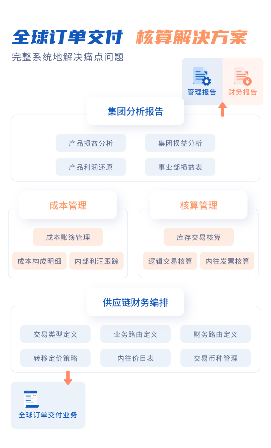 支撑拓展海外市场,统一全球化平台、适应不同国家的财务报告,税务合规、法规监管