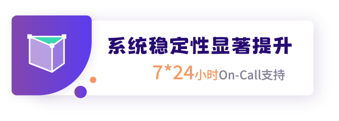 通过系统架构调整、硬件迁移、参数调整以及应用功能的不断优化,系统稳定性有了显著的提升,同时运维组内拥有技术专家顾问,并提供7*24小时On-Call支持,系统问题快速处理有了可靠保障。